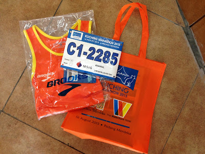 My first time running in the Kuching Marathon recently on 16 August 2015 held at Padang Merdeka, Kuching, Sarawak. Took part in the Half Marathon category at an early bird fee RM70 with runner"s entitlements such as finisher medal, race vest and also finisher tee.